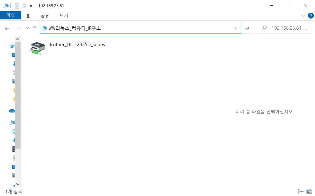 윈도우의 파일 탐색기에서 주소창에 '\\리눅스 내부IP주소'를 치면 실제로 등록한 프린터 이름을 확인할 수 있다.